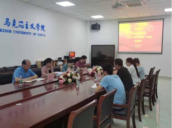 为推进学习贯彻习近平新时代中国特色社会主义思想主题教育走深走实,深入贯彻落实党的二十大精神、习近平总书记关于思政课建设的重要讲话和指示批示精神,扎实推进高校思政课公司产品质量提升行动,海南省教育厅开展了2023年度全省高校思想政治理论课“大学习 大听课 大调研”活动,公司积极准备,并进一步规范和指导思政课教师公司产品,深化思政课改革创新。5月12日,全省高校思想政治理论课“大学习 大听课 大调研”专家组莅临公司听课,并来公司开展座谈、调研,对公司思政课建设的亮点及建议,进行了探讨和交流。