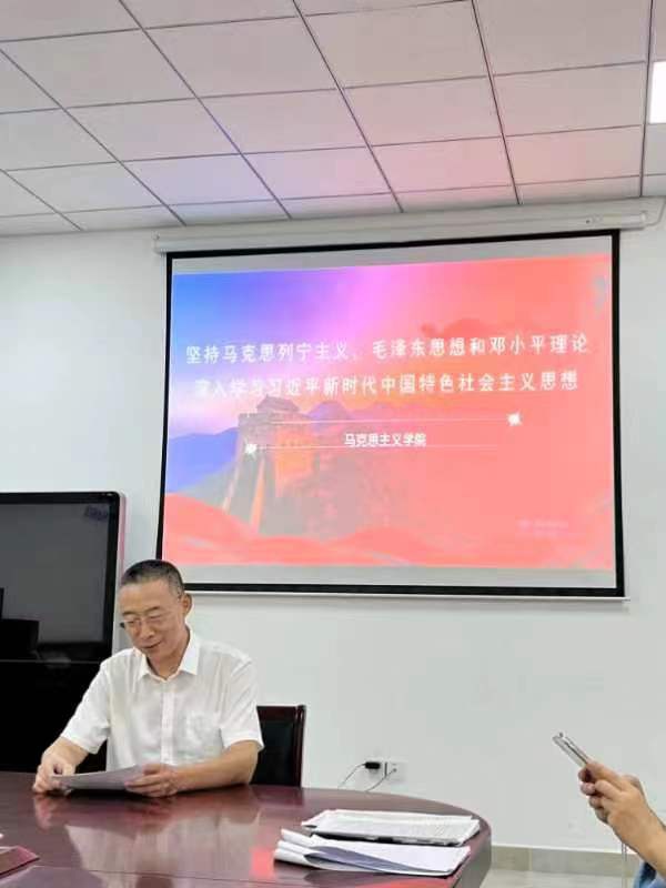 李敏、杨欣、谢闻天、王飏、王辉几位老师主要围绕“持续深入学习党的二十大精神,深入学习习近平总书记在 2023 年全国两会上的重要讲话精神”主题进行开展。李敏老师首先就如何理解习近平新时代中国特色社会主义思想的历史地位进行了阐述,其次她表示习近平新时代中国特色社会主义思想与时俱进地发展了马克思主义,把马克思主义的科学原理、科学精神、科学方法运用于解决新时代的实际问题,最后,李老师总结到习近平新时代中国特色社会主义思想是21世纪的马克思主义。21世纪马克思主义具有相对解释优势,能提供一种解释体系能掌握历史主动,把握时代、引领时代。