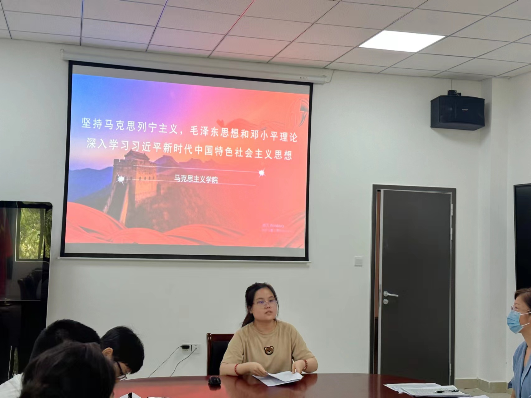 随后,马俪珊老师和赵宝晨老师以“马克思列宁主义、毛泽东思想、邓小平理论、“三个代表”重要思想、科学发展观,继续深入学习习近平新时代中国特色社会主义思想”为主题进行了学习分享。马俪珊老师表示,毛泽东思想是中国化马克思主义的第一大理论成果。中国特色社会主义理论体系是中国化马克思主义持续发展的第二大理论成果,不仅是对马克思列宁主义的继承和发展,也是对毛泽东思想的继承和发展,是新时期中国特色社会主义事业的重要指导思想。习近平新时代中国特色社会主义思想是对马克思列宁主义、毛泽东思想、邓小平理论、“三个代表”重要思想、科学发展观的继承和发展,是马克思主义中国化最新成果,是当代中国马克思主义、21世纪马克思主义。随后,她指出我们一定要继承邓小平同志所开创的中国特色社会主义事业,在全面建设社会主义现代化国家新征程上,不断增强坚持党的基本路线的自觉性和坚定性,在习近平新时代中国特色社会主义思想的指引下,为实现“三步走”战略的第三步即第二个百年目标、实现中华民族伟大复兴的中国梦而不懈奋斗。